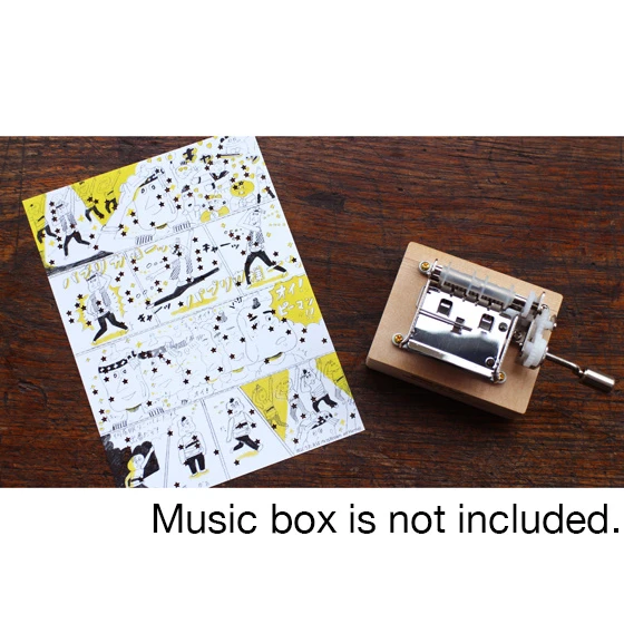 This paper-tape music box manga gives you a new way to enjoy manga using an old-fashioned twist! Feed the paper tape through a music box and watch as manga artist Hiromi Kadoās illustrated story unfolds alongside the hole-punched melody! Entitled āAkogare no Kimi,ā the paper-tape manga plays the tune of āSinginā in the Rainā and features a short comical manga about a daydreaming boy with a bell pepper head. Playful and bizarre in the best possible way, this unique manga is sure to bring you lots of entertainment!