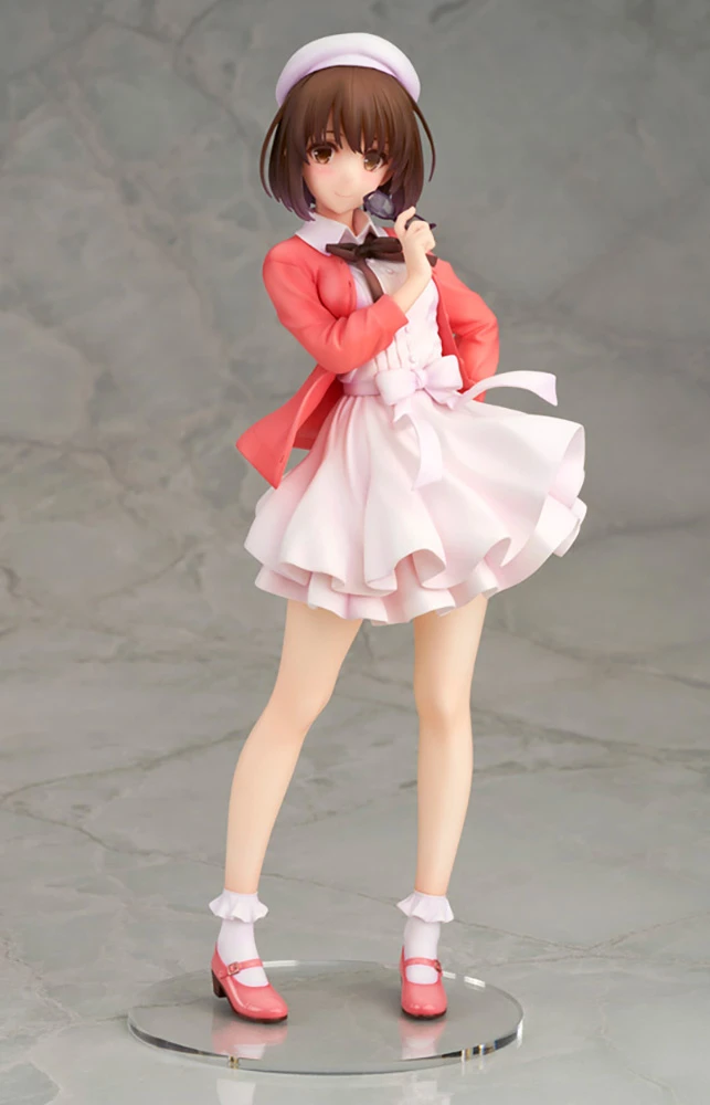 Alter and sculptors Teruyuki+DUTCH have collaborated to bring you a heartwarming interpretation of Megumi Kato from Saekano: How to Raise a Boring Girlfriend! There’s certainly nothing boring about this girlfriend, dressed in a light pink spring outfit comprised of a short ruffled skirt and hot peach sweater! Megumi-chan is featured with a slight blush coloring her soft smile as she playfully holds Tomoya’s glasses in her hand. And just when you thought this figure couldn’t be anymore perfect, Megumi proves it can be, thanks to the inclusion of her trademark beret!