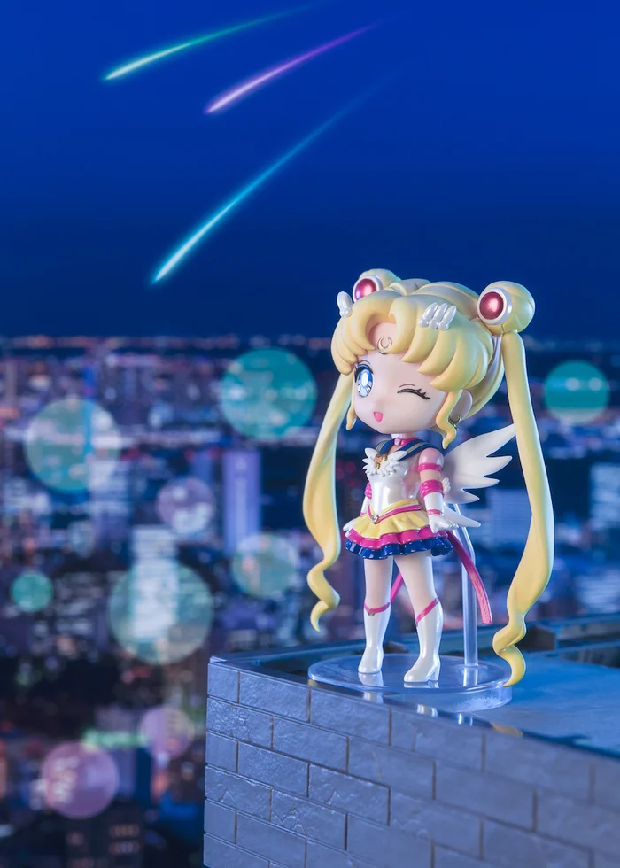 Bandai’s Figuarts mini line of adorable palm-size chibi figures of fan-favorite characters is celebrating the upcoming two-part movie Pretty Guardian Sailor Moon Cosmos the Movie with this new lineup, and the first to join is Eternal Sailor Moon Cosmos! Measuring 3.5″ tall and captured in her Eternal form, she features expressive lifelike eyes and simple posability and comes with an alternate right arm part holding her Eternal Tiara, giving you multiple ways to display her. Be sure to add her to your collection!