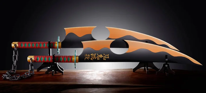 Bandai’s Proplica series continues to bring us faithful replicas of the Nichirin swords of some of our favorite Demon Slayers from Demon Slayer: Kimetsu no Yaiba, and this time they do justice to Tengen Uzui’s twin chained swords! The flashy Sound Hashira’s swords each measure 43.7″ long with their design faithfully recreated down to the phrase “Demon Slayer” written in kanji on each one. What’s more, they also feature dialogue, sound effects, and music from the anime!
