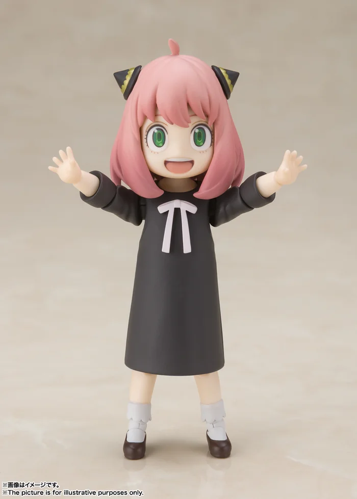 From Bandai’s S.H.Figuarts action figure line comes Anya Forger from the popular anime Spy x Family! Measuring 3.1″ tall, she is recreated in her signature black dress and comes with four face plates so you can capture her expressive personality, including her innocent look with big puppy dog eyes and her comical smug look. She also comes with two pairs of optional hands, and thanks to her high level of articulation you can easily recreate your favorite moments from the series.