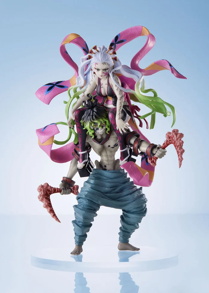 The Upper Rank Six sibling duo from the Entertainment District Arc of Demon Slayer: Kimetsu no Yaiba have arrived to sow fear and chaos in the ConoFig series of figures that are just the right size for any collection! Produced by Aniplex at 7.9″ tall, Daki is captured riding on Gyutaro’s shoulders in a pose that shows their bond as siblings. Careful sculpting and paintwork bring their look from the anime to life in impressive detail with plenty of highlights to appreciate from every angle. Don’t miss out on adding them to your collection!