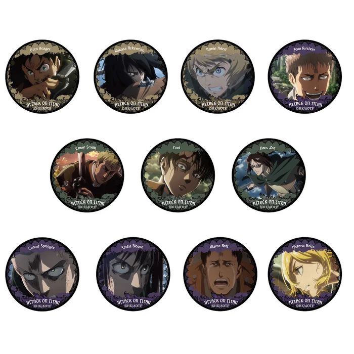 From Kadokawa comes new collectible pin badges featuring fan-favorite characters from Attack on Titan! Each 3” badge is dedicated to a different character, some of which even feature new artwork! The lineup includes Eren, Mikasa, Armin, Jean, Erwin, Levi, Hange, Connie, Sasha, Marco, and Historia. Try and collect your favorites!