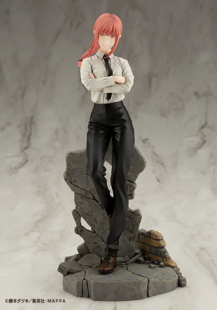From the popular anime Chainsaw Man comes an ArtFX J figure of the enigmatic leader of Public Safety Devil Hunter Tokyo Special Division 4, Makima! Sculpted by Yuzo at 8.9″ tall, she is captured standing stoically with arms crossed as she gazes calmly with a mysterious expression. Excellent sculpting captures every wrinkle and crease in her Devil Hunter uniform, and a sense of movement is conveyed in the delicate sway of her braided ponytail. Even the base she stands on is finely detailed and features crumbling brick and concrete. Display her together with