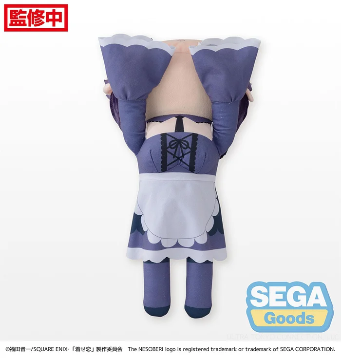 From SEGA comes an extra large, extra cute plushie of the cosplay-loving gyaru from the hit anime My Dress-Up Darling, Marin Kitagawa! Measuring nearly 16” long, she wears her Shizuku-tan cosplay and is captured in a lying down pose with an adorable embroidered expression featuring blushed cheeks and big purple eyes.