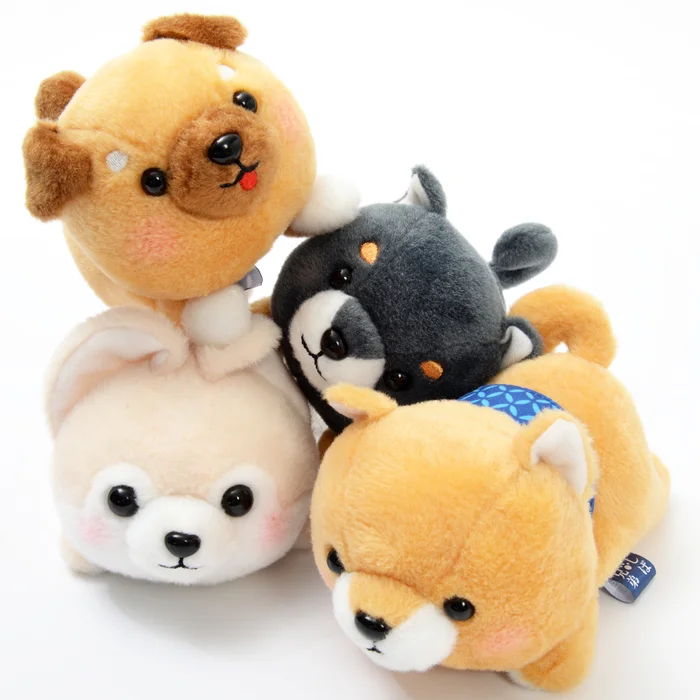 Your favorite Shiba Inu pups have been playing all day, making them so tired they just sprawled on the ground! About 7.1” long, 3.1” tall, and 3.3” wide, Mametaro, Mamejiro, Mamesaburo, and Sasuke are your standard size plushies you can hold in one hand, so why not let one of these puppies rest on your palm? You can also get the Complete Set for a group hug!