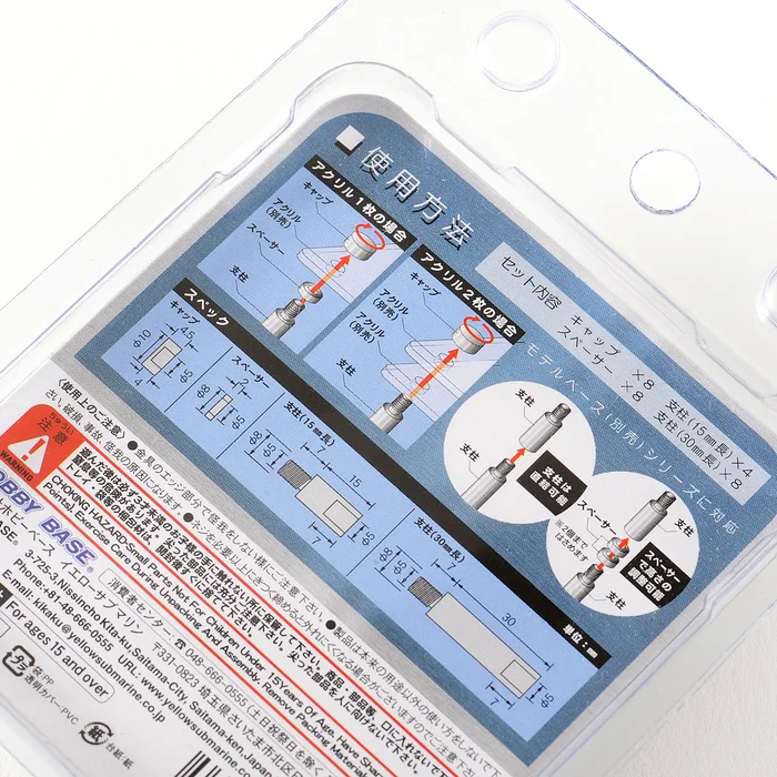 Containing four 15 mm poles, eight 30 mm poles, eight spacers, and eight aluminium caps, this set can help you in building a base to display your models and figures, placing them in the spotlight!