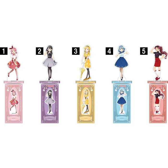 Introducing collectible acrylic stands of the magical quintet from Puella Magi Madoka Magica looking lovely in new outfits! From Movic, each 7.9″ figure features brand new artwork of Madoka, Homura, Mami, Sayaka, or Kyoko posing in a fashionable look themed after their image color and comes with a stand featuring their name to display them on.