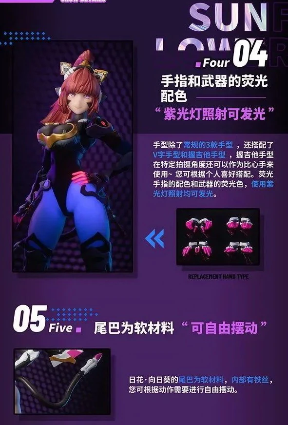 From BIGFIREBIRD BUILD’s new Science Cat Lady Team figure line comes the first character to be released, Himawari! Measuring 7″, her unique look incorporates cat girl and mecha girl elements in a design that’s both stylish and sexy, and she comes with a variety of optional parts including interchangeable faces, hands, and a LSP Terminator guitar saber weapon so you can create tons of poses ranging from sultry to action-packed!