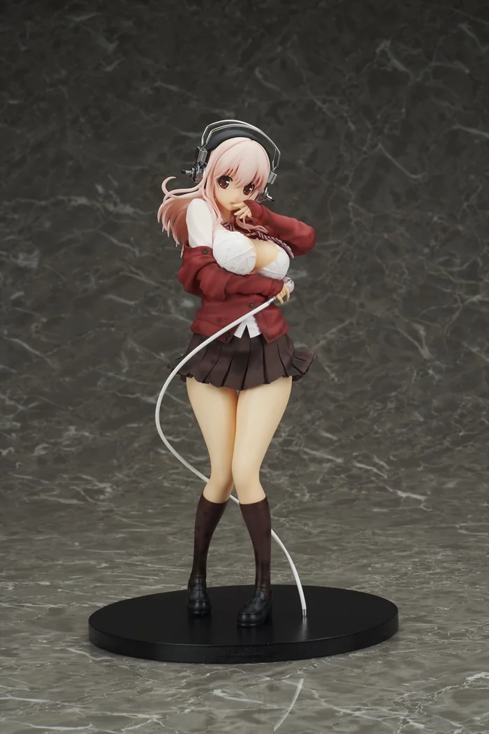 Super Sonico was busy working hard and striking poses at a photo shoot when somehow she ended up soaking wet! But in classic Sonico style, her surprised pose makes her even cuter, as she’s making an adorable shocked expression and has her hand raised shyly to her face.