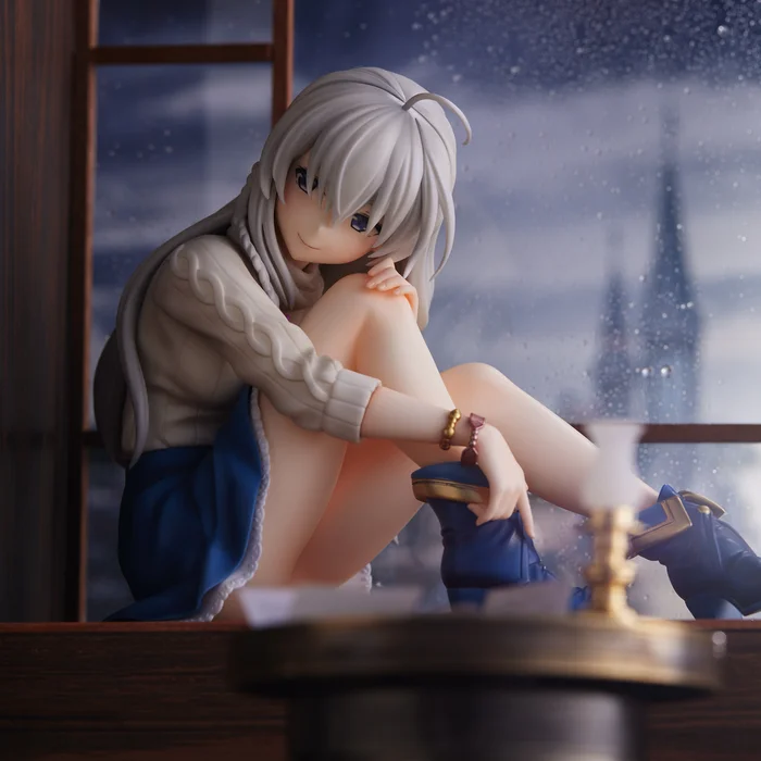 From the anime series Wandering Witch: The Journey of Elaina comes a non-scale figure of Elaina based on her design from the cover artwork of volume 8 of the light novel! Produced by Union Creative with sculpting by Design Coco, the Ashen Witch measures 4.7″ tall in a seated position as she hugs a knee into her chest and glances our way with a warm, compassionate smile. Careful sculpting and paintwork capture her charming look down to the smallest details, including the knit look of her top, the frilly hem of her skirt, the accessories on her wrist, and the braids in her hair. Don’t miss out on enjoying her casual look and calm charm as part of your collection!
